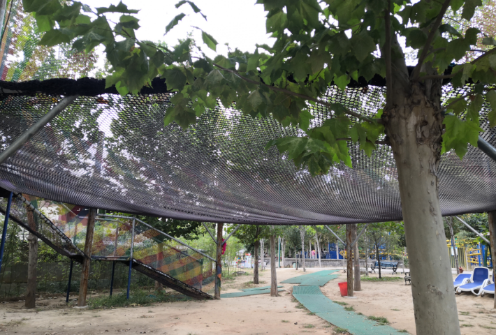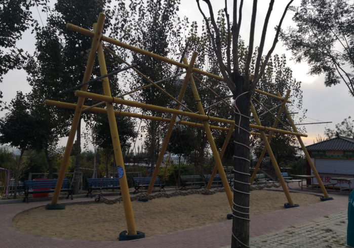 這套叢林魔網(wǎng),建在這里真的是很好,可以在上面自由的蹦蹦跳跳,玩累了,躺在哪里看白云藍(lán)天也是不錯(cuò)。