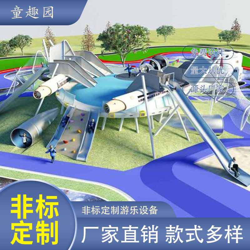非標(biāo)定制游樂(lè)設(shè)備可以同時(shí)容納多個(gè)人一起玩耍的,比如說(shuō)大型的攀爬網(wǎng)、蹦床、不銹鋼滑梯、沙池樂(lè)園等等。這些互動(dòng)型游樂(lè)設(shè)備,是需要多個(gè)共同參與,趣味性同樣也是比較強(qiáng)的。