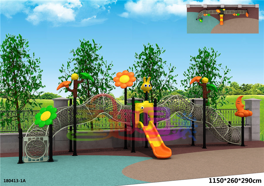 優(yōu)點(diǎn):網(wǎng)繩攀爬類屬于無(wú)動(dòng)力游樂(lè)設(shè)備,是體能訓(xùn)練和冒險(xiǎn)教育中的關(guān)鍵組成部分,對(duì)增強(qiáng)體質(zhì),促進(jìn)智力發(fā)育和培養(yǎng)積極堅(jiān)韌的心理起到重要及深遠(yuǎn)的影響。其以探索、挑戰(zhàn)、運(yùn)動(dòng)、成長(zhǎng)為核心,融入戶外運(yùn)動(dòng)、拓展、童軍教育、心理行為訓(xùn)練的精華,是促進(jìn)兒童體能、情智雙商全面發(fā)展的綜合訓(xùn)練設(shè)施。