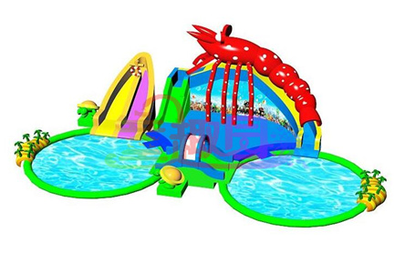 這款定制的小型水上樂園包含設(shè)備有:魚頭滑梯+充氣水池、支架泳池、大象水滑梯、水上沖關(guān)、章魚水滑梯以及彩虹水滑梯